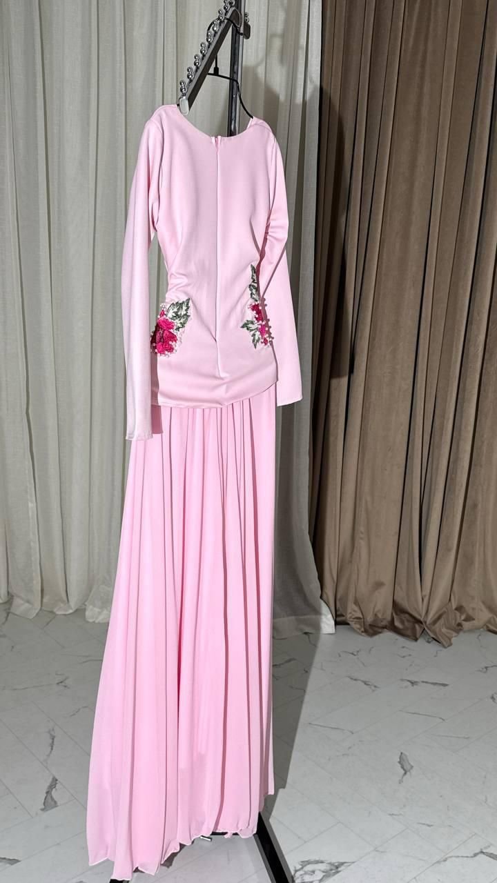 فستان “نرجس” – أناقة وردية بتطريز فاخر